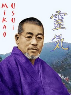 Dr. Mikao Usui je vodil krščansko semenišče v Kjotu na Japonskem ob koncu 19.stoletja. Enega njegovih učencev je zanimalo, kakšno vrsto zdravljenja je uporabljal Jezus Kristus pri čudežnih ozdravitvah. Ker ni znal odgovoriti, se je odločil, da bo potoval po krščanskih deželah, dokler ne bo našel odgovora. Proučeval je številna besedila, a vse je bilo zaman. Šele po vrnitvi iz Amerike je v zen budističnem japonskem samostanu naletel na stare budistične sutre z znamenji in simboli v sanskrtu in zdelo se mu je, da bi utegnili biti pravi odgovor na zastavljeno vprašanje. Besedila je natančno proučil in sklenil, da bo 21 dni na gori Kurijami meditiral nanje. Ob zori 21.dne je opazil, da se mu naglo približuje svetlobni žarek. Ko ga je dosegel, ga je nevidna sila vrgla ob tla in v tistem hipu je videl, da se na nebu izrisujejo v različnih barvah simboli, ki jih je našel v sutrah. Ko se je vračal z gore, se je spotaknil ob kamen in si poškodoval prst. Spontano je položil dlani na krvaveči prst in bolečina je v hipu izginila, krvavitev pa se je ustavila.